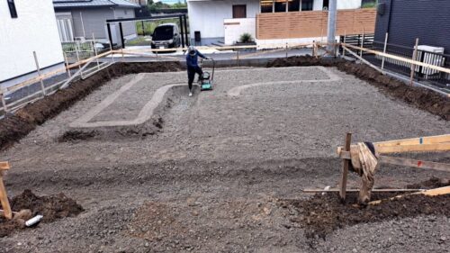 9月に地鎮祭を行ったT様邸。建築確認申請もおりて、地盤改良工事着工後、基礎工事が始まりました。