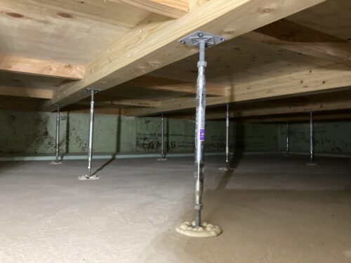 上棟前に大工さんの土台敷き&土台伏せを行うタイミングで伏せる前に綺麗にお掃除します。でも、建築中の木材の粉などはやはり落ちます。そういったところは全て瀧井が床下に潜って綺麗に掃除をします。