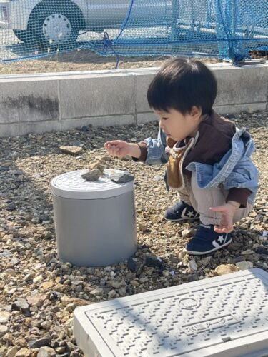 Aくん、地鎮祭、おつかれさまでした~♪催事が終わったので、大好きな石遊び、たのしそう!