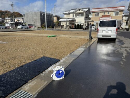 監督の加藤君からの写真報告です。青空が綺麗ですね~♪昨日は、岐阜は雪が降り水分を含んだ土がトラックの出入りで道路を汚してしまったので、綺麗に水洗いした様子もお施主様のT様に報告。