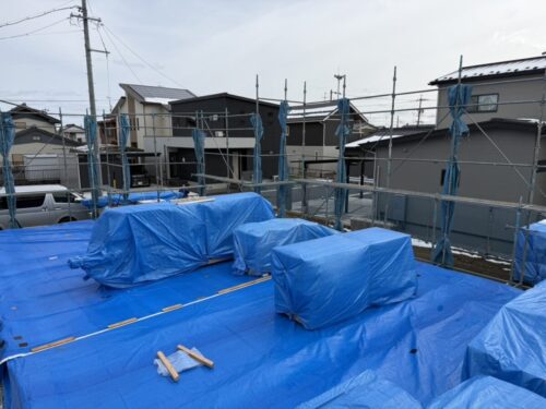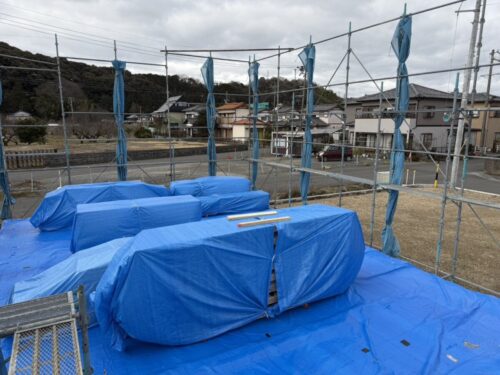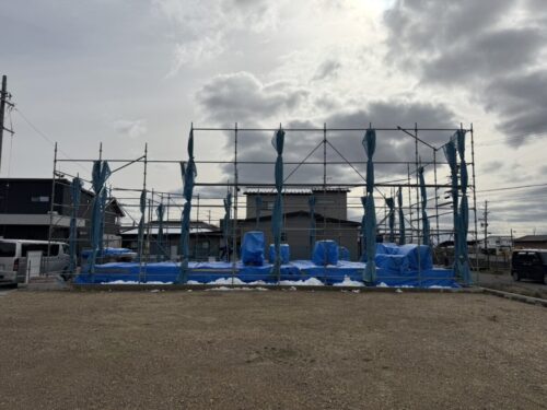 T様邸〜足場施工 2026年01月27日 ここ数日間、寒波が続いていますね。 この寒い時期はモデルハウスの温かさを実感できる貴重な時期でもあります。 T様邸では、1月27日の上棟に向けて、足場施工が行われました。 建物は平屋です。屋根には大容量の太陽光発電が搭載されるため、足場も高く施工されています。 搬入された柱や梁、合板木材、材料はしっかり養生します。この時期、夜は氷点下になり空気中の湿り空気が凍りつきます。 上棟!楽しみです! 営業 市川さかえ マイホーム実現!へのベストルートブログ ツイート シェア はてブ pocket LINE 新年会2026〜イシンホーム岐阜南 前へ 一覧へ 次へ おすすめ関連記事 B様邸~プラスターボード張り 2024年08月11日 新年 あけましておめでとうございます! 2025年01月06日 岐阜市北山~M様邸上棟!GX志向型住宅 2025年04月27日 M様邸~養生外し完成クリーニング前 2025年07月22日