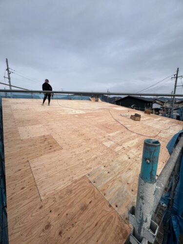 1日で屋根ルーフィングまで作業が進んだことにとても驚かれたT様。