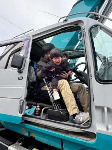 朝、レッカーさんの車に乗せてもらう体験では、Aくん、大泣き!あまりの大きさに驚き‼️泣けてきちゃったようです。