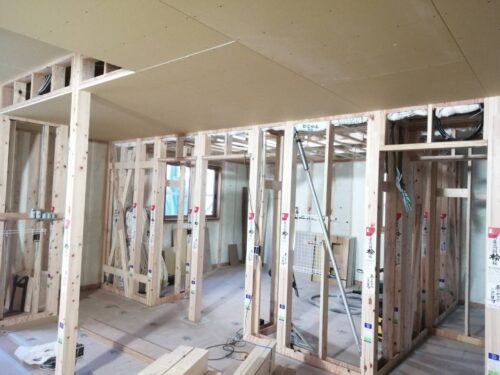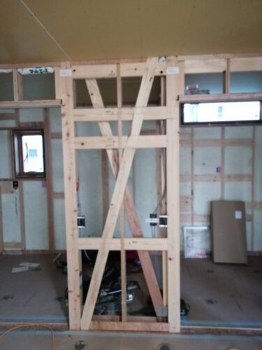 小寺棟梁からお施主様LINEグループに送られてくる工事途中の写真です。筋交いX、ガチガチです(笑)