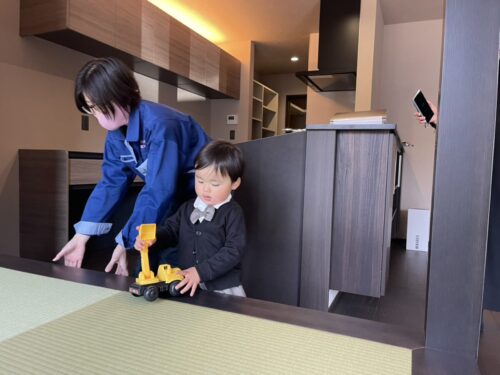 思えば昨年のGW明けにご来場いただいてから、約10か月です。土地選びからのスタートでしたが、全てが順調に進み、和モダンの素敵なお家が完成しました。ちいさなAくんは、もう自分のお家だって分かるみたいで、早く家の中に入りたいとジェスチャーで示します!
