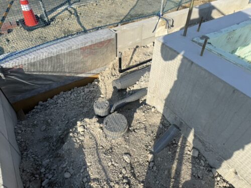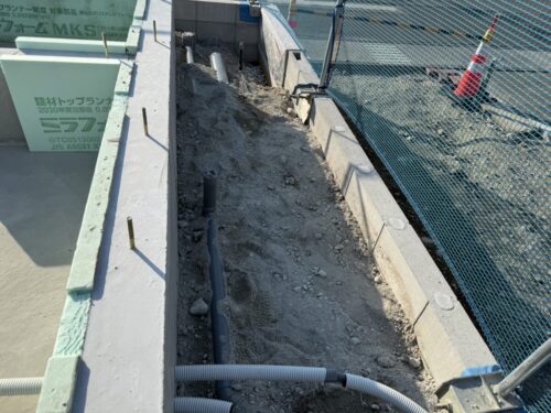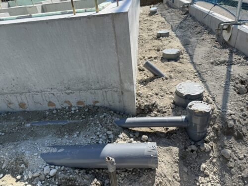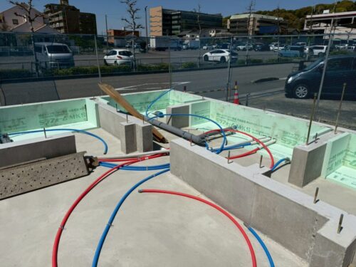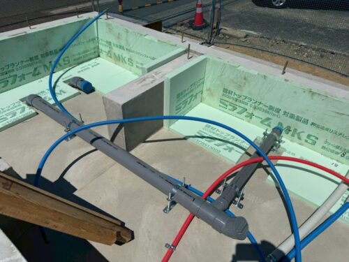 基礎周囲の配管工事は水道工事のマサ君担当です。
