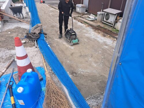 K様居住中の隣地と新築地の間の通路も綺麗にならし固めてくださいました。